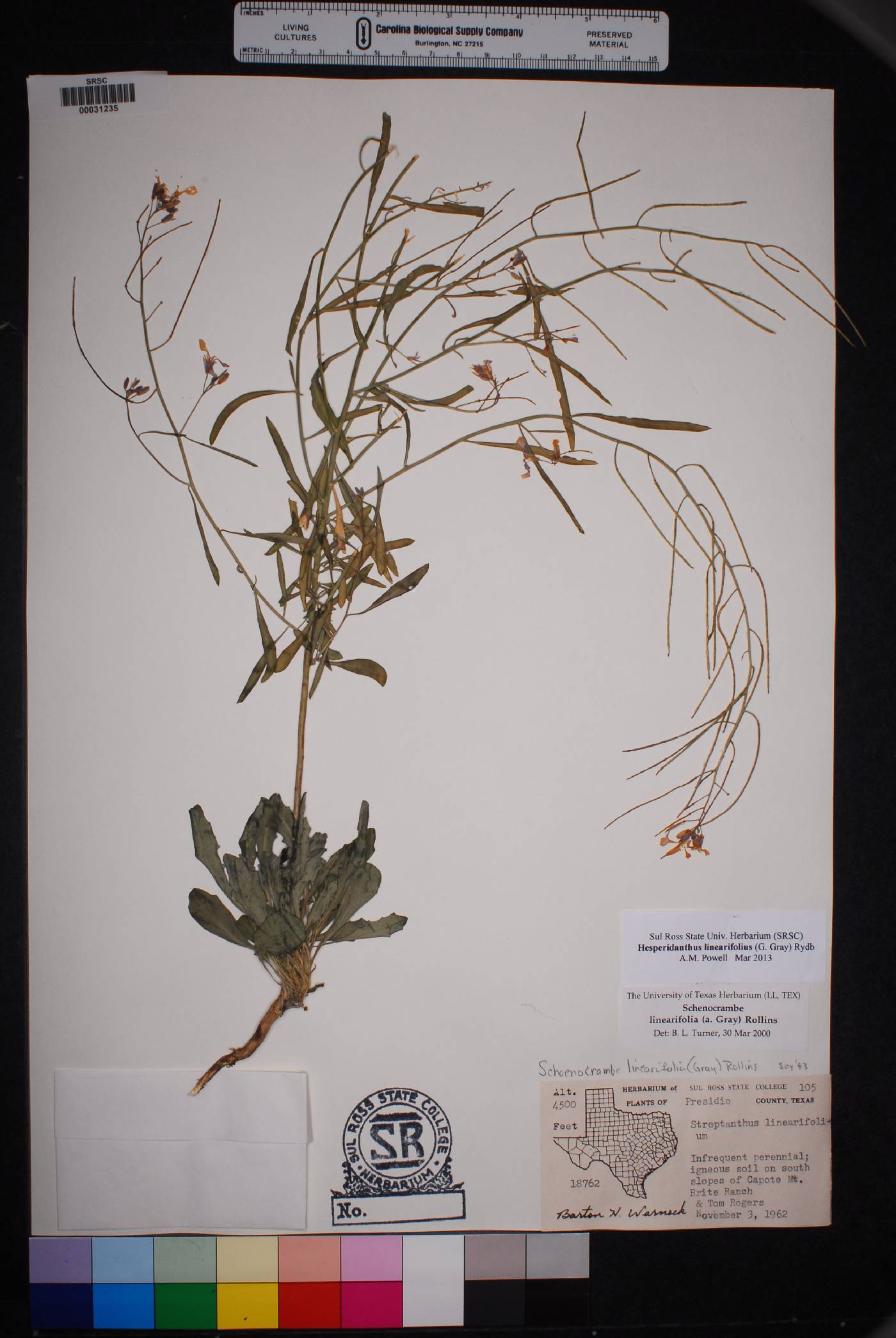 Synonym: Hesperidanthus linearifolius (HELI6). Perennials. Leaves linear to linear-lanceolate, rarely lanceolate. Open woods, dry hillsides, oak woodland, mixed conifer forests, arroyos, canyons, rocky ridges, limestone ledges, sandstone crevices, roadsides; 700-3100 m.